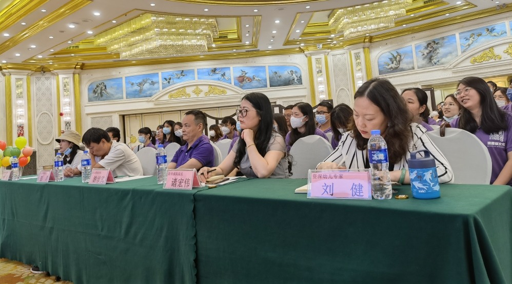 圖為資深幼教專家劉健女士上臺致辭發(fā)言。